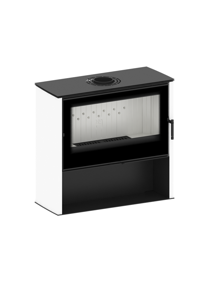 Freistehender Kamin LUPO L ist in der Farbvariante Weiß und Schwarz erhältlich modern Heizung auf Hol zeichnet sich durch einen hohen thermischen Wirkungsgrad und eine ökologische Verbrennung aus. Die L-Version ist mit einer Nennleistung von 11 kW das größte Modell der gesamten Baureihe. Freistehender Kamin wurde vollständig aus P265GH-Kesselblech hergestellt, wodurch es im Vergleich zu ähnlichen Geräten aus Standardbaublech widerstandsfähiger gegen Temperaturschwankungen ist. Ein freistehender Kamin Dank der Aufrechterhaltung einer dichten Kammer und der Möglichkeit der Luftzufuhr von außen kann es erfolgreich in Häusern mit Wärmerückgewinnung eingesetzt werden.