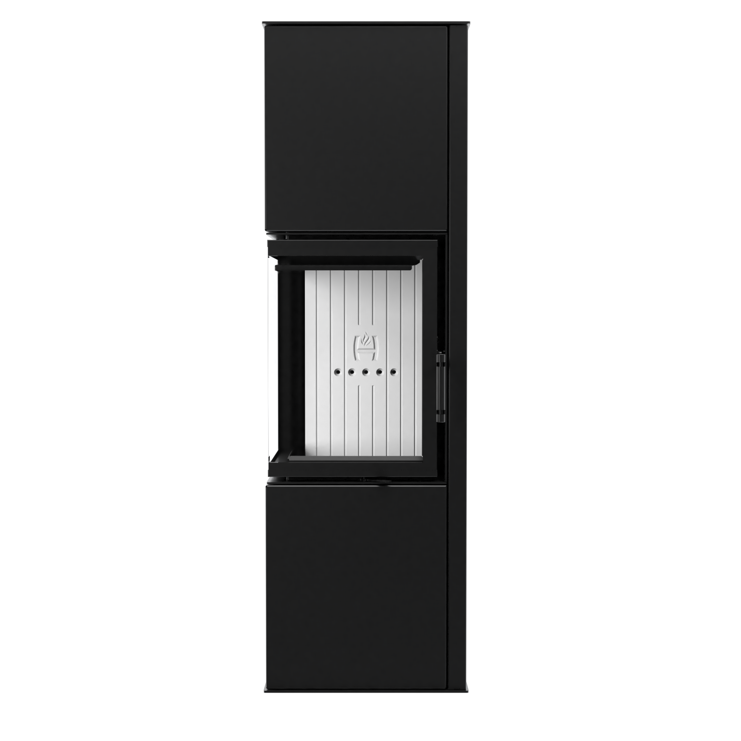 Eckige freistehende Öfen SIGA ermöglichen den Anschluss auf zwei Arten. Die erste Möglichkeit besteht darin, den Anschluss durch die Seitenwand vorzunehmen, während die zweite Möglichkeit den Anschluss durch die obere Wand des Ofens vorsieht. Zusätzlich können die hinteren Abdeckungen des Ofens frei ausgetauscht werden. Die Ecktüren des holzbefeuerten freistehenden Ofens bestehen aus Kaminkeramik, die beidseitig poliert ist. Die Keramik ist für hohe Temperaturen von bis zu 800°C geeignet. Darüber hinaus bestehen die gesamten Ecktüren aus Kesselblech und einem speziellen Profil. Diese Kombination gewährleistet Stabilität und sicheren Betrieb.