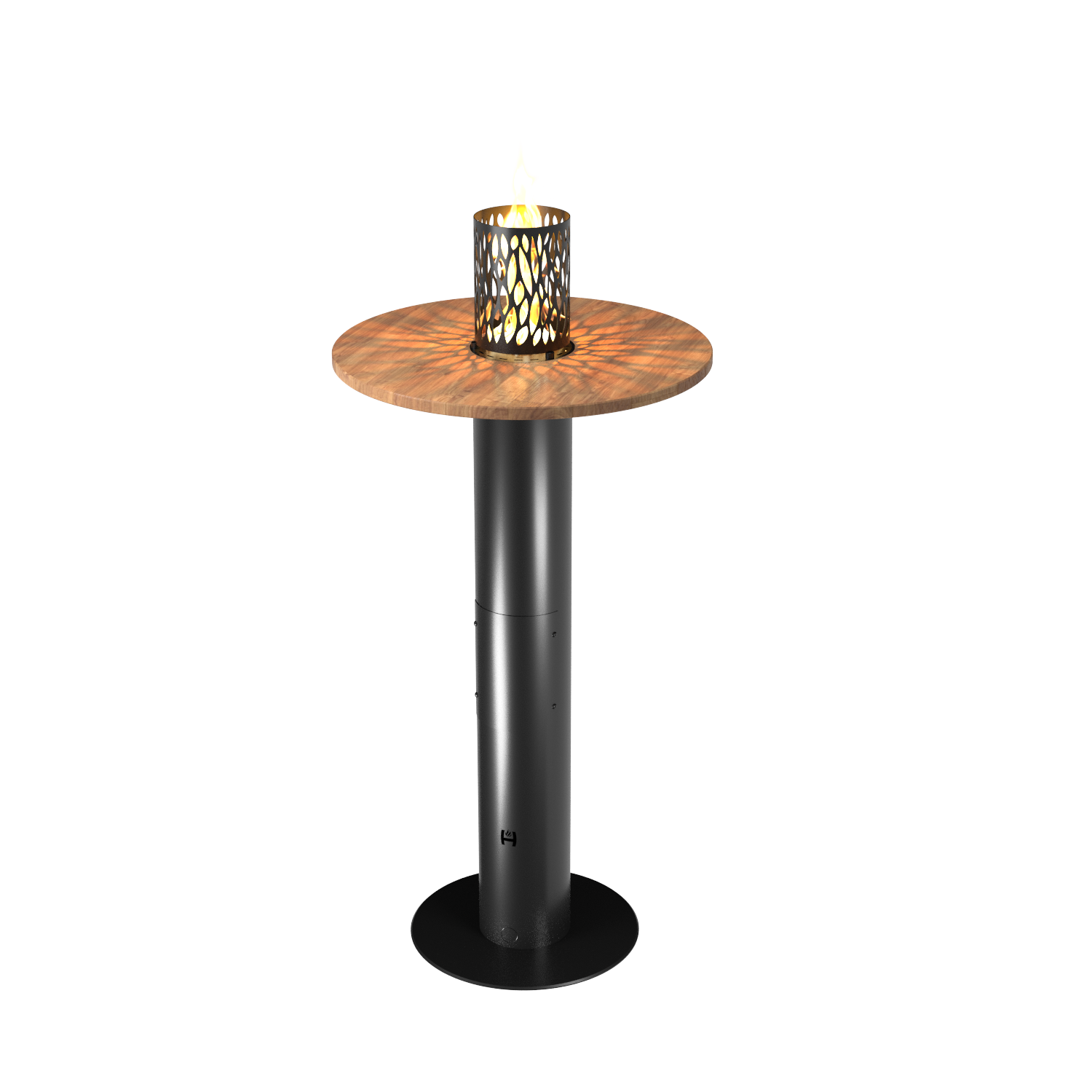 FUENTE I Gas-Terrassenheizung und Stehtisch mit Thermoelementsensor. Ausgestattet mit einer runden Holzplatte mit Kamin. Er kann als hoher Stütztisch dienen. Angetrieben durch eine Flasche – eine Mischung aus Propan- und Butangasen oder reines Propangas. Mit einer 11-kg-Flasche Dauerbetrieb bis zu 196 Stunden (8 Tage). Manuell und Fernbedienung mit einer Fernbedienung.